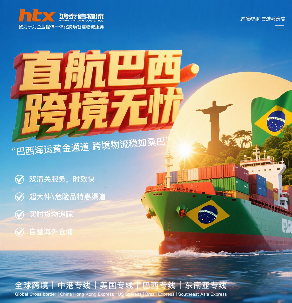 鴻泰信為了助力中國跨境商家,發(fā)展電商大市場,特別推出了海運海...